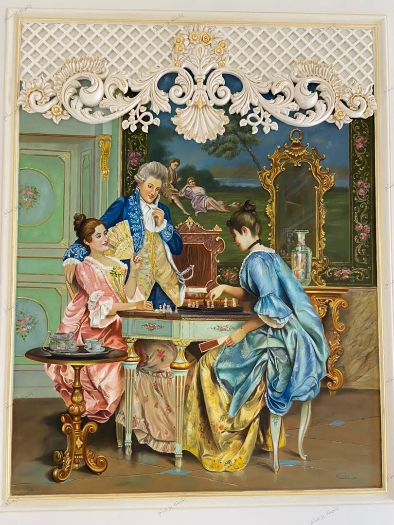 ب – محل قرار گیری پایه کار در نقاشی دکوراتیو مهم نیست و بر روی سقف ، کف ، دیوارها ، ستونها و سایر مواضع قابل اجراء می باشد .